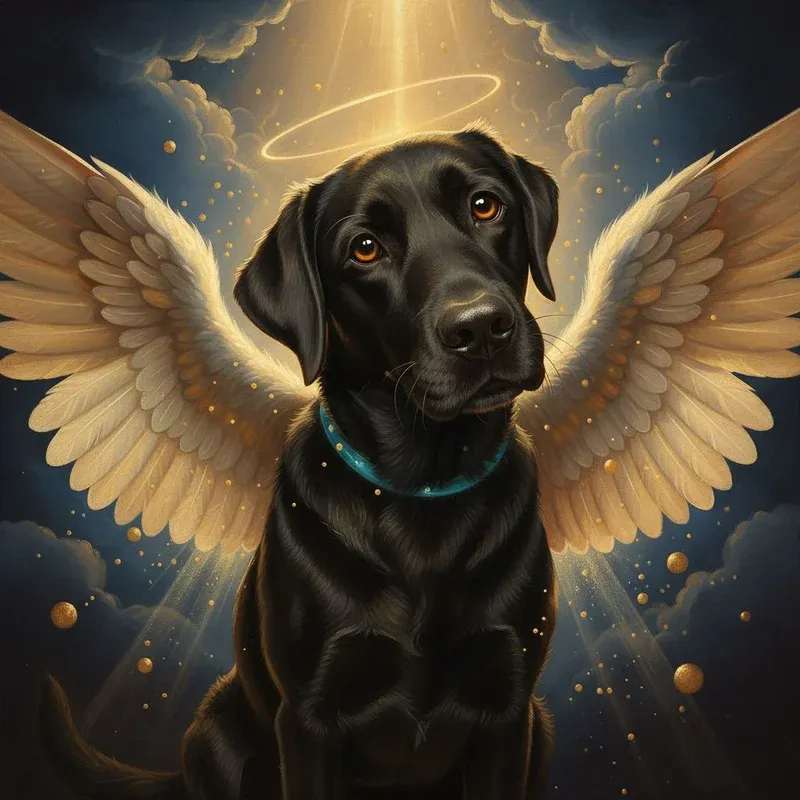 Dein Liebling in goldenen Wolken – ein ewiges, liebevolles Andenken.
