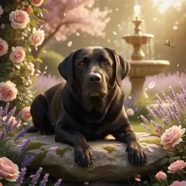 Dein Liebling in einem blühenden Paradiesgarten – friedvoll und voller Farbe.